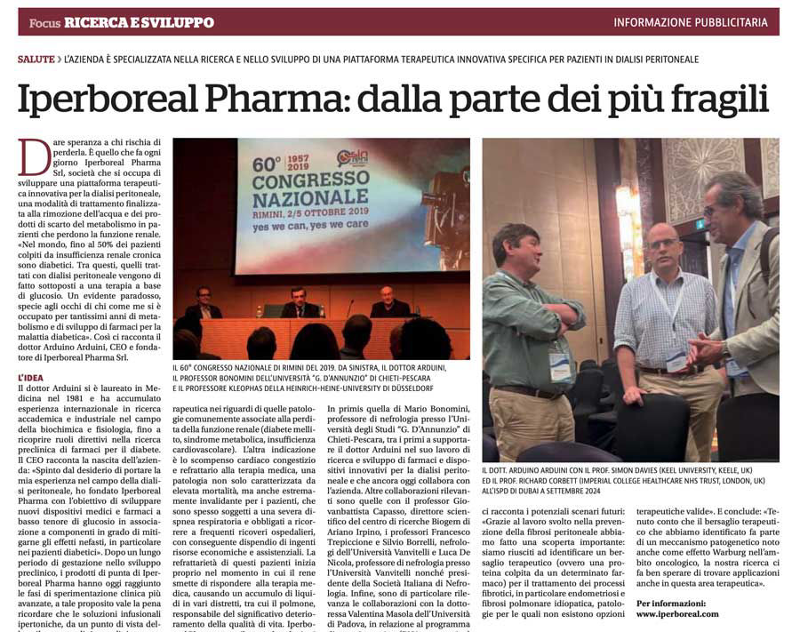 In collaborazione con nefrologi italiani, pubblicazione scientifica sulla biocompatibilitĂ delle soluzioni di dialisi peritoneale.