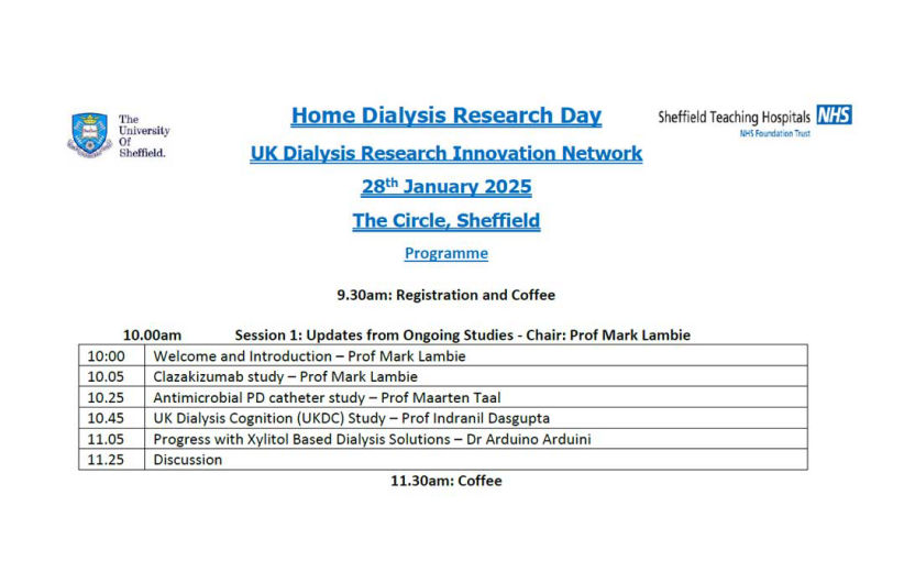 Il dott. Arduini invitato dalla University of Sheffield e dalla UK Kidney Foundation, relatore per un aggiornamento sul trial clinico ELIXIR.