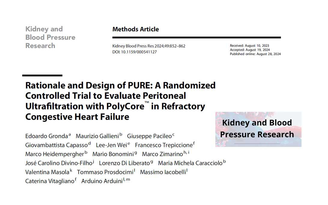 Pubblicazione del disegno del trial clinico multicentrico di Fase II “PURE” su “Kidney and Blood Pressure Research”